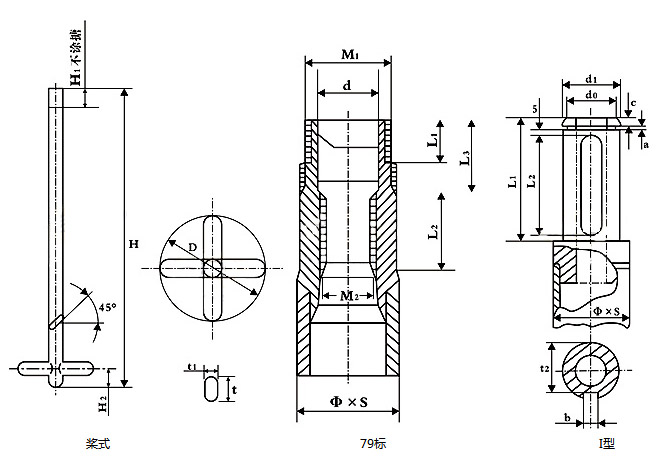 规格 | φ×S | H | H2 | D | t | t1 | t2 | d1 | d0 | L1 | L2 | a | b | t2 | c |